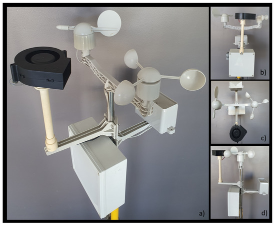 As described in [17], the MEIoT weather station comprises temperature, relative humidity, barometric pressure, altitude, light, rainfall, wind speed, and wind direction sensors, and a wind blower actuator was added to this work to generate an external disturbance while it is prepared to integrate more exogenous disturbances inputs. This disturbance is under the user control. The 3D model of the complete MEIoT weather station with an exogenous disturbances input can be seen in Figure 2.