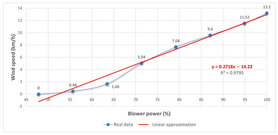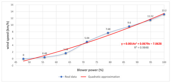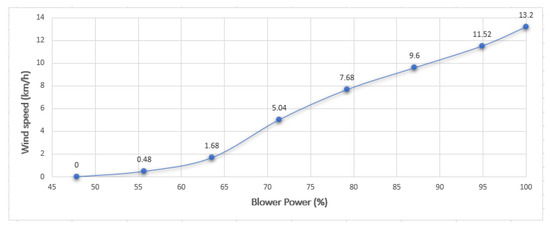 A Radox 510-752 blower model was employed, Figure 4c. It had a 3.84 W max energy consumption at 12 V, with a maximum speed of 3000 Revolutions Per Minute (RPM). The microcontroller used an open loop control to drive a dedicated PWM from the microcontroller, Figure 8. Finally, an HW-95 board with an L298N dual H-Brigde was used as a power stage to drive the blower motor. This exogenous disturbance source can generate disturbances for both wind speed and wind direction sensors that can stimulate those registered inputs’ variability.