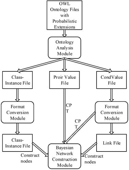The concepts and instances, prior probabilities and conditional probabilities in the ontology described by the language with probability extensions are parsed and saved in a txt file. After parsing, the files, and are generated to represent the class and instance relationships, prior probabilities and conditional probabilities in the MUSVs uncertain event ontology, respectively.