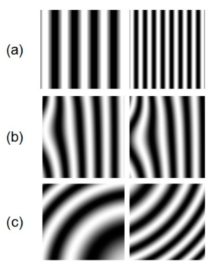 The second and third kinds of fringe patterns were generated according to Equations (8) and (9). The 1600 fringe patterns with different fringe shapes were obtained through image cropping and rotation from a fringe pattern: