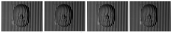 A 1-mm-thick disk was chosen as the measurement object. The position and angle of the disk were altered to obtain different fringe patterns. To obtain a sufficient number of images to meet the big data requirement of network training, such data extension as image cropping, translation, and rotation were used. One thousand fringe patterns were obtained. Figure 7 shows one of these and its corresponding phase-shifting fringe patterns.