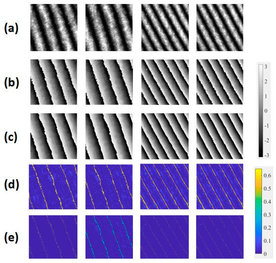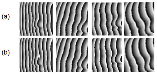For the phase data of the simulation fringe patterns, the value of was 0.03 rad and that of was 0.07 rad.