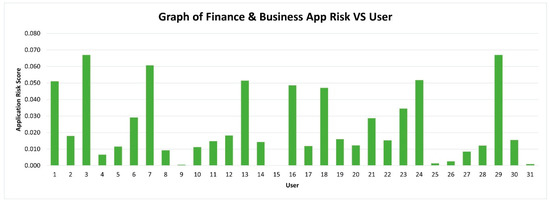 Some interesting patterns can be observed based on the data collected from 31 users. Previous researchers have identified that utility applications are low risk in contrast to finance-based applications. However, our results indicate the opposite. The findings are presented in Figure 5 and Figure 6.
