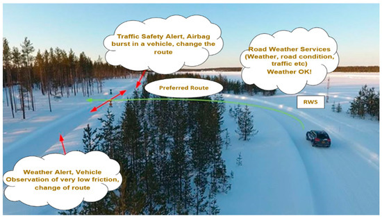 - Mäenpää, K.; Sukuvaara, T.; Ylitalo, R.; Nurmi, P.; Atlaskin, E. Road weather station acting as a wireless service hotspot for vehicles. In Proceedings of the 2013 IEEE 9th International Conference on Intelligent Computer Communication and Processing (ICCP), Cluj-Napoca, Romania, 5–7 September 2013; pp. 159–162. [Google Scholar]