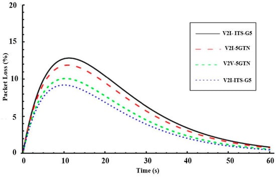Figure 9 shows the packet loss in vehicular networking during the pilot measurements. In the V2I scenario, the cellular system had a slightly higher packet loss compared to the ITS-G5 case, due to relatively long initialization time for the connection step-up in the field measurements. However, when connection between vehicles was established, the cellular network packet loss dropped dramatically, and it had almost the same performance at the end of the test drives. For the V2V scenario, the 5GTN performed better in contrast to the cellular system. Figure 9 also illustrates that the packet loss in the V2V scenario using ITS-G5 was slightly higher due to the haphazard nature of the test-track and weak communication link between vehicles due to the fluctuating distance between them. Features like high carrier frequency and edge computing made the 5GTN’s performance superior that of ITS-G5 (e.g., less latency). Hence, the overall performance of the pilot measurements illustrates that the heterogeneous network’s performance was good enough to fulfill the vehicular networking application requirements. This heterogeneous network shows that the pilot measurements performance have clear potential to decrease the accidents and loss of life on roads.