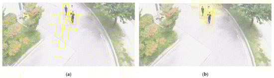 Object detection is a fundamental topic in computer vision and an important component of sensor-based situational awareness systems for autonomous driving. With the emergence of convolutional neural networks (CNNs), object detection schemes have evolved significantly in the past few years. The development of various detection frameworks, such as faster region-based CNN (R-CNN) [6], RetinaNet [7], and single-shot multi-box detector (SSD) [8], has led to considerable advancement in the newly invented state-of-the-art technologies for object detection and identification. Two-phase detection frameworks including preprocessing steps to generate region proposals, such as faster R-CNN and mask R-CNN [9,10], have been proposed to increase the detection accuracy. Moreover, single-phase detection frameworks, such as “you only look once” (YOLO) [11], Single Shot Detector (SSD), and corner-Net [12], have been developed to maximize the computational efficiency to enable real-time detection. Despite the clear differences between these two pipeline structures, the ultimate objectives of the modern detectors being currently proposed are to accurately classify objects and estimate their locations in images. Although, concurrently, numerous different object detection frameworks have been proposed [13,14,15], designing a robust and accurate detection system is still a challenging task because of the various environmental problems encountered in real scenarios.