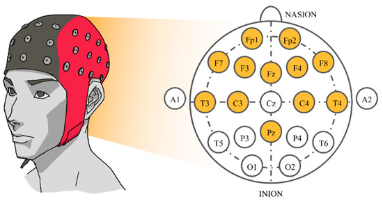 The 10–20 system of electrode placement showing the selected electrodes.