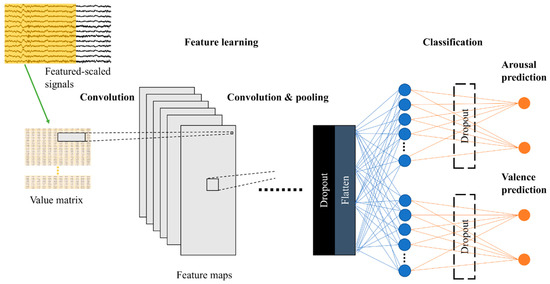 Recently, convolutional neural network (CNN), with unmanned feature representation learning, has been applied to EEG-based emotion recognition [13], circumventing the cumbersome feature engineering while improving classification accuracy concurrently [14,15]. It has advantages at capturing adjacent spatial information [16,17], which, in this case, is spatiotemporal material from EEG. Its performance has been found to be superior to other traditional approaches in subject-dependent emotion recognition [18,19] and it demonstrates the potential to generalize the classification to unseen subjects [20]. The network has been applied to numerous problems, including EEG-related tasks, such as motor imagery classification [21], P300 EEG classification [22], sleep stage scoring [23], human activity recognition based on EEG [24], etc. However, CNN-based EEG-emotion recognition is still in its infancy. Apart from trainable CNN parameters, many hyperparameters focusing on spatiotemporal factors of EEG, which are important and can impact the recognition, remain under-explored.
