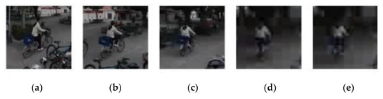 is a 2-D position in the score map. is the ground truth label of the position r, determined by the distance between the ground truth of the target position and the center of the candidate image. is the score corresponding to the exemplar image and the candidate image centered at the rth position within the search image. The stochastic gradient decent is adopted for optimization of Equation (11). In the tracking phase, the 2-D position with the highest score is taken as the predicted center of the target in the current frame.