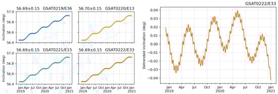 4.1. Time Series Analysis of the Orbit Inclination and Orbital Period