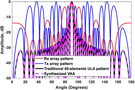 On the other hand, the virtual antenna array (VAA) concept has emerged as a promising beamforming technique in high-performance radar systems that are equipped with separate transmit and receive antenna arrays. VAA allows the proper utilization of the transmitter array (TA) and the receiver array (RA) for the synthesis of wide varieties of highly efficient and cost-effective radiation patterns that are fully dependent on the TA and RA radiation patterns. However, the synthesized patterns may have distinct characteristics compared to that of the individual patterns of the transmitter and receiver arrays. The implementation of a VAA is not restricted to a specific design scheme. Recently, many VAA beamforming schemes have emerged for performance enhancement of traditional radar systems, multi-input multi-output (MIMO) radars, and automotive radars [,,,,,,,,,,,,,,].