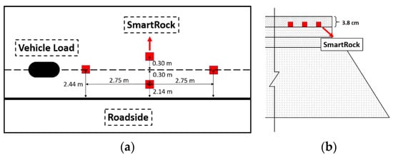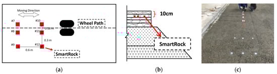 The configuration of the APT test: (a) Top view; (b) Side view; (c) The embedded SmartRocks.