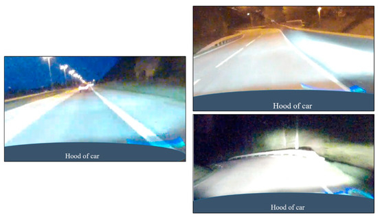 In all cases, Ambient light had no impact on a successful prediction, as indicated by the exponential(B) or odds ratio ≈ 1 in Table 4. It is possible that the scenarios used in this study did not provide a wide enough range of ambient light values to correctly identify its significance in camera-based lane detection. However, the results were in line with Table 2, which showed that the best prediction of road marking detection occurred at night, suggesting that the LDW system was not dependent on ambient light. These results indicate that the combination of low ambient light and headlights, as shown in Figure 4, does not pose a problem for machine vision lane detection. In fact, the model performed overall better at night, which was contrary to findings by Lundkvist and Fors [31] and Borkar et al. [32].