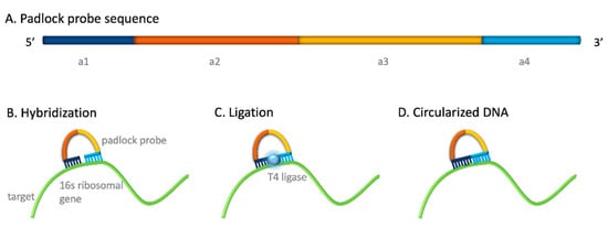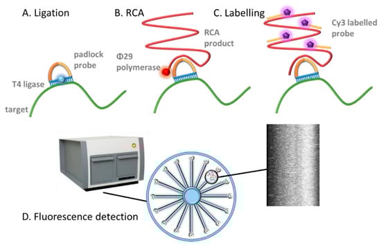 - Nilsson, M.; Malmgren, H.; Samiotaki, M.; Kwiatkowski, M.; Chowdhary, B.P.; Landegren, U. Padlock probes: Circularizing oligonucleotides for localized DNA detection. Science 1994, 265, 2085–2088. [Google Scholar] [CrossRef]
