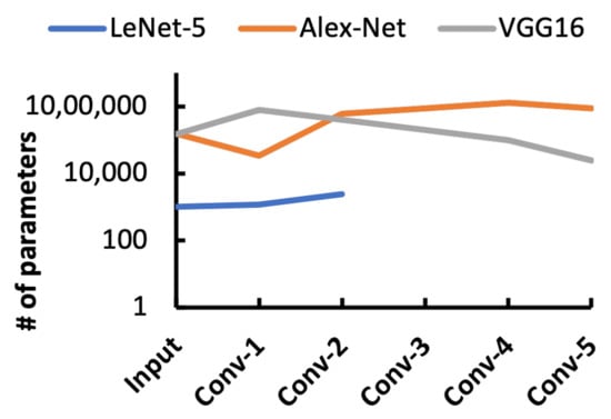 This study suggests embedding an efficient inference engine to process image data at the edge device directly to collect useful information from the image (see Figure 1c). Since effective information in an image is minimal, the system demands a negligible data propagation time . According to Figure 1d, and it justifies that the data transportation time is no longer a bottleneck. This strategy further lessens the computational burden on the central node or host. However, the major challenge is that inference computation is costly and requires a large memory and computation power. A vast amount of parameters are associated with every learning method, presented in Figure 2. For instance, the VGG-16 learning model has 136 million parameters [9], and storing these parameters inside a vision chip is difficult. Aiming to mitigate all these problems, we propose hierarchical attention-oriented region-based processing or HARP. The HARP presents a hardware architecture to make an image sensor an active device by initiating hierarchical parallel computation at the focal plane. The hierarchical processing enables sensor-level information extraction instead of transferring raw data. Since the processing begins at the focal plane, there is high bandwidth for computation, making HARP a suitable candidate for high-speed applications.