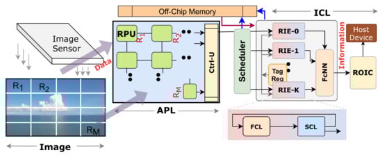 Inference computation is the second phase of our design, and the hardware design for near sensor implementation is pictured in Figure 3. The submodules in ICL take a region if the region has relevance (see Figure 4). Then ICL initiates the CNN processing with a region-based approach using the data from a relevant region only.