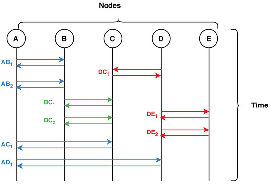 The first feature, ‘Number of flows’, represents the number of siblings in a flow bundle. Given the communication between a host, A, and one or more hosts, all flows initiated by A are counted. This feature represents the communication flow. The advantage of this feature is that it is significant for attacks that intentionally spread their associated requests over time when targeting a single host. However, when grouped, the bundled flow will have additional information about how many flows are in the same group that can resemble the communication pattern. Moreover, it can represent patterns when an attacker targets many hosts, but each with a few communications, when grouped, a pattern can be identified.