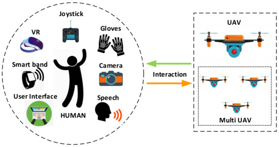 Methods used for UAV control in single or multiple human–UAV interactions.