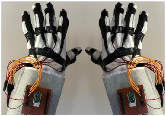 - Saleh, N.; Farghaly, M.; Elshaaer, E.; Mousa, A. Smart glove-based gestures recognition system for Arabic sign language. In Proceedings of the 2020 International Conference on Innovative Trends in Communication and Computer Engineering (ITCE), Aswan, Egypt, 8–9 February 2020; pp. 303–307. [Google Scholar]