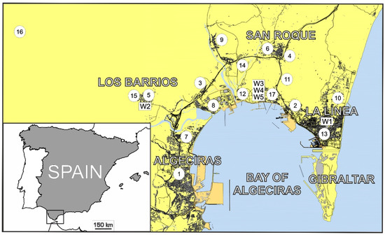 The Bay of Algeciras is a densely populated and heavily industrialized region situated in the south of Spain. The total population of this region in 2020 is estimated at 300,000 inhabitants [30]. It contains an oil refinery, a coal-fired power plant, a large petrochemical industry cluster, and one of the leading stainless-steel factories in Europe.
