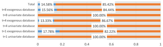 The univariate and exogenous datasets were split into two disjoint training and testing subsets as a first step. The training subset included the first 70% of the records and was used to train the models and determine their hyperparameters. The remaining 30% was used as the test subset. In this sense, the models’ performance was tested using unseen data from this subset.