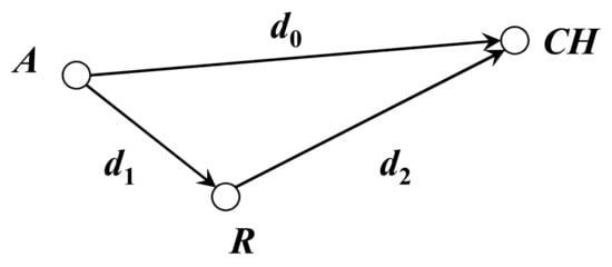 According to the above analysis, the energy cost of the relay case will be smaller than the energy cost of the non-relay case when the condition of Equation (10) is satisfied. Each node in the cluster can select an appropriate node as a relay node, and each relay node can perform a data aggregation after receiving all data packets from the nodes it relays. So, the remaining energy of the relay nodes should be as much as possible. The merged data is then forwarded to the relay nodeβs relay node or BS. Through such a relay mechanism, the energy efficiency of the whole network will be improved.
