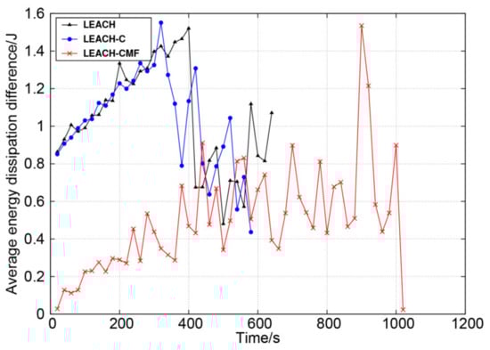 The difference of average energy dissipation per round between cluster heads and non-cluster nodes.