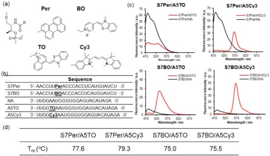 - Asanuma, H.; Akahane, M.; Kondo, N.; Osawa, T.; Kato, T.; Kashida, H. Quencher-free linear probe with multiple fluorophores on an acyclic scaffold. Chem. Sci. 2012, 3, 3165–3169. [Google Scholar] [CrossRef]