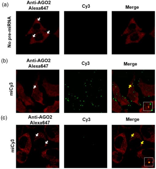 - Lu, J.; Tsourkas, A. Imaging individual microRNAs in single mammalian cells in situ. Nucleic Acids Res. 2009, 37, e100. [Google Scholar] [CrossRef] [PubMed]