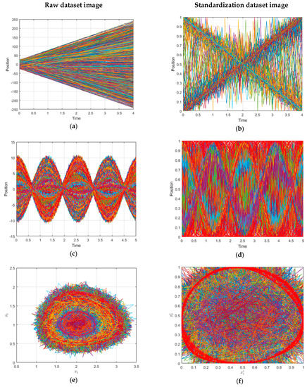 The key to the generation of the synthetic database , lies in matching noisy trajectories with ideal trajectories shifted one-time unit under data packages. The noise paths are generated by adding a Gaussian noise with variance to the simulated system states paths to be measured. If the measured paths start at and end at , the target paths start at and end at , thus, maintaining the dimensionality one unit shifted. The size of the time window is therefore the L values. The length of the simulated trajectories is equal to two consecutive non-overlapping time windows, so that the first-time window of each trajectory is used for the training subset and the second for the validation subset. Thus, the problem is formulated as a sequence-to-sequence learning system.