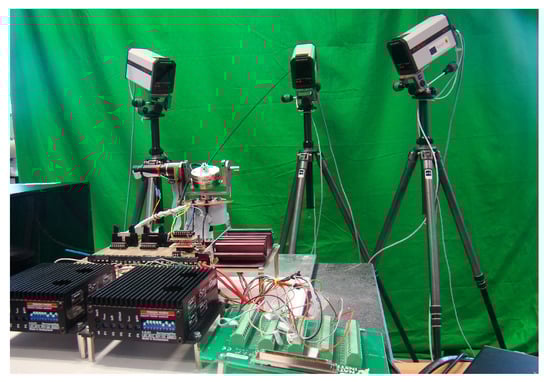 A photograph of the robotic sensing antenna is provided in Figure 5. It shows a camera-based system, which is used as an external sensor to measure the position of the tip of the flexible link.