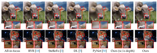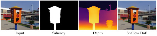 | Input: all-in-focus image , saliency map S, depth map D, camera factor A |