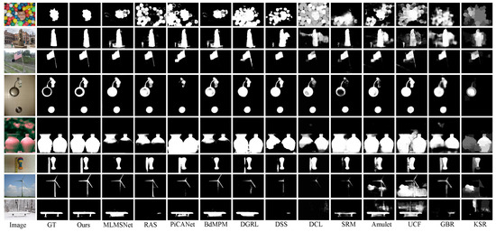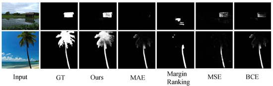 Heterogeneous ranking loss: Given a ground truth saliency map G, we randomly sample N point pairs , where i and j represent the first and second points’ locations, respectively. For each point pair, the first point denoted as comes from the background, while the second point belonging to a salient region can be represented by . Guided by the index from ground truth, we use to represent the sampled point pair from the predicted saliency map P. As a result, the sampled set can be represented by Z. Note that N is image-dependent because different images have different numbers of foreground pixels. We sample N point pairs from each image, where N equals the minimum number of pixels between foreground and background.