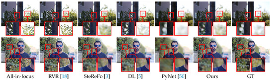 To render realistic shallow DoF, depth information is required. Some methods use stereo techniques to compute depth maps from stereo images [