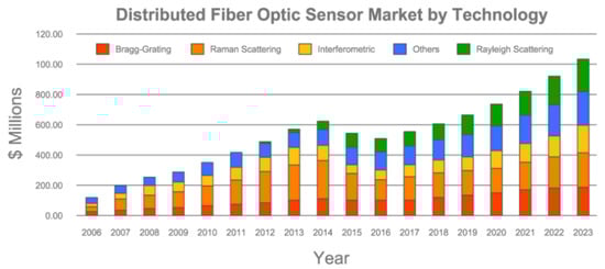 It is worthy of note that, according to Figure 2, the combined distributed and single point fiber optic sensor markets are projected to be over USD 1.3 billion in 2023. In this respect, the present work represents an effort aimed at facilitating the use of OFS for both the present and prospective users of this novel technology.