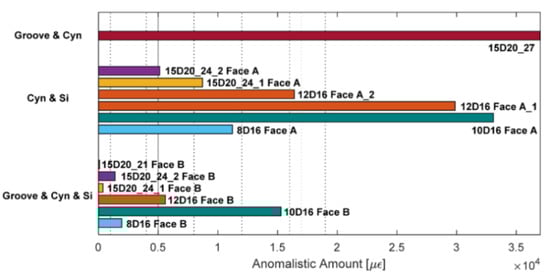 The authors continued reporting an unexpected phenomenon, possibly connected to the under-performance of the bonding techniques, which caused an alteration of the DOFS strain readings whenever the fiber was in the presence of extra bending-induced tension (smoothing out strain profiles) and/or monitoring strains in cracked cross-sections (magnifying their amount). Additional work on the involved transfer mechanisms could be the key to such phenomena. Finally, it was asserted that, whilst none of the studied bonding techniques could completely guarantee the removal of all SRAs, the combination of a longitudinally incised groove, cyanoacrylate and silicone was the bonding technique that led to the smallest amount of SRA thus preserving the readability and reliability of the strain data (see Figure 9).