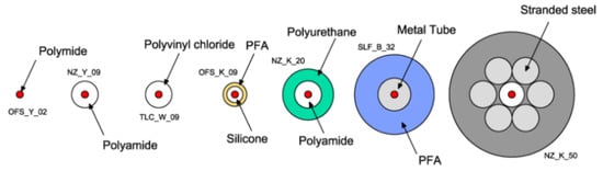 - Articles [44,52] presented particularly varied selections of DOFS cables with equally deep studies of their performances;