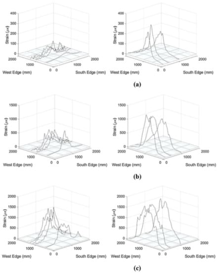 - Nurmi, S.; Hoult, N.A.; Howell, S.D. Distributed strain monitoring of two-way slabs. Eng. Struct. 2019, 189, 580–588. [Google Scholar] [CrossRef]