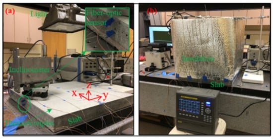 - Liao, W.; Zhuang, Y.; Zeng, C.; Deng, W.; Huang, J.; Ma, H. Fiber optic sensors enabled monitoring of thermal curling of concrete pavement slab: Temperature, strain and inclination. Meas. J. Int. Meas. Confed. 2020, 165, 108203. [Google Scholar] [CrossRef]