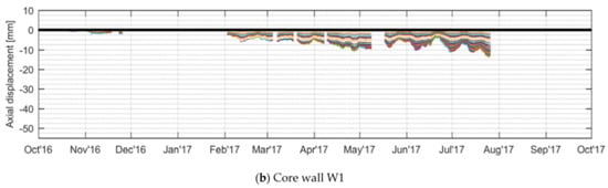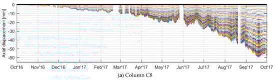 - de Battista, N.; Cheal, N.; Harvey, R.; Kechavarzi, C. Monitoring the axial displacement of a high-rise building under construction using embedded distributed fibre optic sensors. In Proceedings of the 8th International Conference on Structural Health Monitoring of Intelligent Infrastructure, Brisbane, Australia, 5–8 December 2017. [Google Scholar]