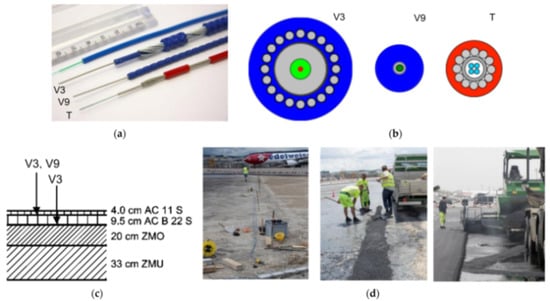 - Rabaiotti, C.; Hauswirth, D.; Fischli, F.; Facchini, M. Structural health monitoring of airfield pavements using distributed fiber-optics sensing. In Proceedings of the 4th Conf. on Smart Monitoring, Assessment and Rehabilitation of Civil Structures (SMAR 2017), Zürich, Switzerland, 13–15 September 2017. [Google Scholar]