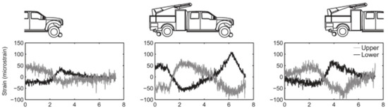 - Webb, G.T.; Vardanega, P.J.; Hoult, N.A.; Fidler, P.R.A.; Bennett, P.J.; Middleton, C.R. Analysis of Fiber-Optic Strain-Monitoring Data from a Prestressed Concrete Bridge. J. Bridg. Eng. 2017, 22, 1–14. [Google Scholar] [CrossRef]