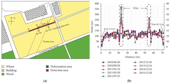 - Liu, J.; Wang, Y.; Lu, Y.; Wei, J.; Kanungo, D.P. Application of distributed optical fiber sensing technique in monitoring the ground deformation. J. Sensors 2017, 2017. [Google Scholar] [CrossRef]