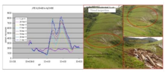 - Minardo, A.; Catalano, E.; Coscetta, A.; Zeni, G.; Zhang, L.; Di Maio, C.; Vassallo, R.; Coviello, R.; Macchia, G.; Picarelli, L.; et al. Distributed Fiber Optic Sensors for the Monitoring of a Tunnel Crossing a Landslide. Remote Sens. 2018, 10, 1291. [Google Scholar] [CrossRef]