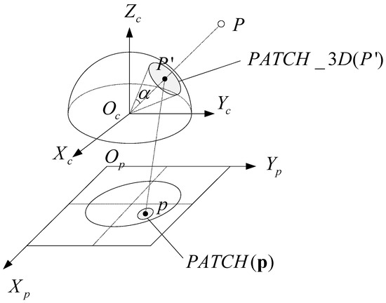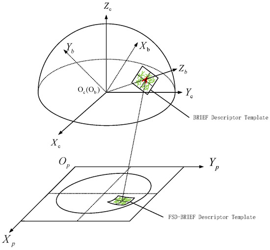 - The center point of the descriptor template coincides with the projection point of the feature point on the sphere. In other words, the coordinate of point in the feature point attitude coordinate system is .