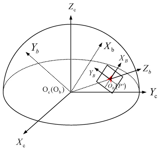 - As shown in Figure A3, ensure that the line is perpendicular to the test image plane , that is , so as to ensure that the circular neighborhood used to calculate the gray centroid of the feature point in the test image and the optical center of the camera forms a regular cone;