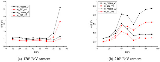| θ (°) | Version 1 (Without Compensation) | Version 2 (With Compensation) | Error Reduction (%) | |||