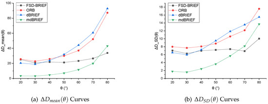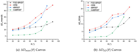 | θ (°) | FSD-BRIEF | ORB | dBRIEF | mdBRIEF | ||||