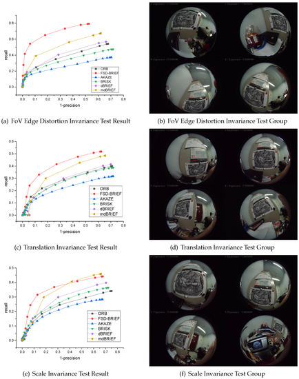 5.2. Experiment 2: Descriptor Invariance Evaluation of Fisheye Images in Different FoV Positions