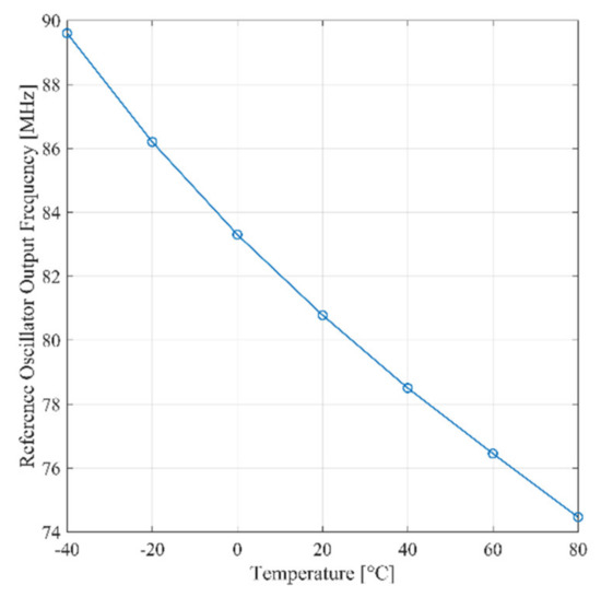 By deriving Equation (A2), with respect to the temperature and neglecting the temperature coefficient of VDD,ref, the frequency temperature coefficient is obtained as